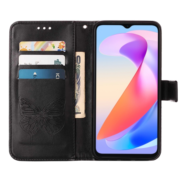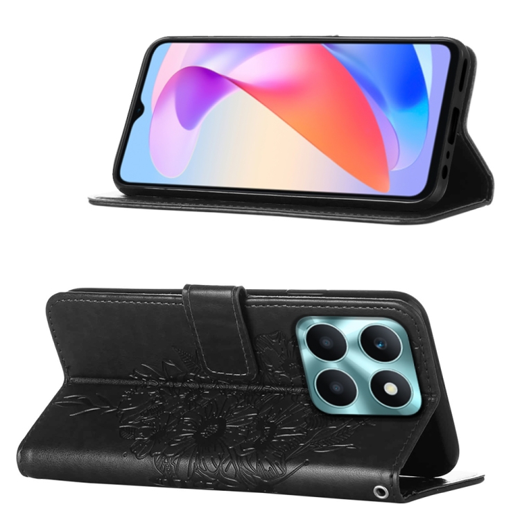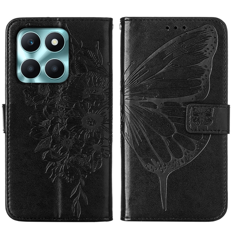 Funda de Cuero para Honor X6A con Mariposa en Relieve (Negro)