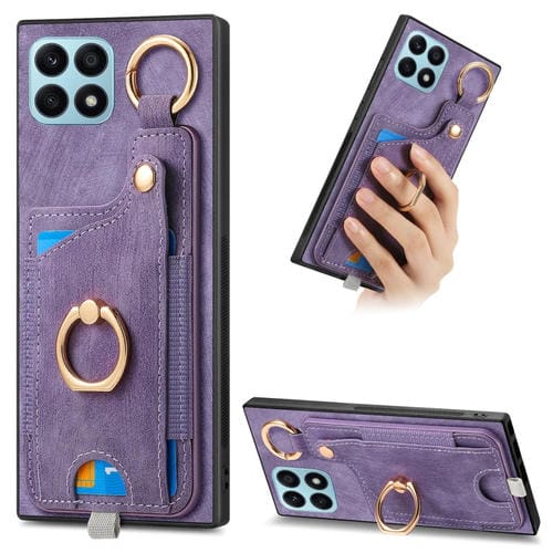 Funda para Honor X8A con Bolsa para Tarjeta, Anillo y Lazo para Colgar (Púrpura)
