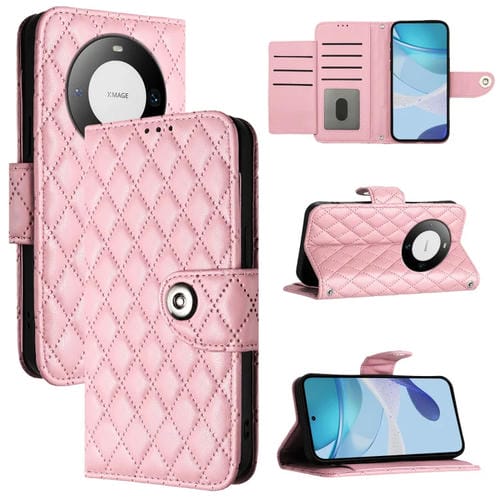 - 1x Funda para Huawei Mate 60 Pro / 60 Pro+ con Tapa de Cuero textura rómbica y cordón (Rosa)