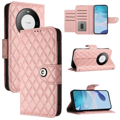 - 1x Funda para Huawei Mate 60 Pro y 60 Pro+ con Tapa de Cuero textura rómbica y cordón (Rosa Coral)