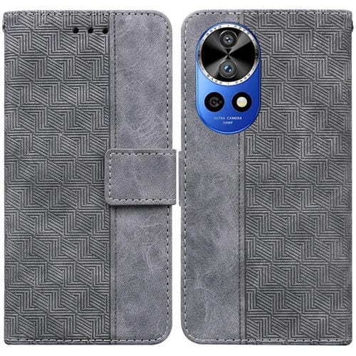 Funda de Cuero para Huawei Nova 12 Pro con Relieve Geométrico (Gris)