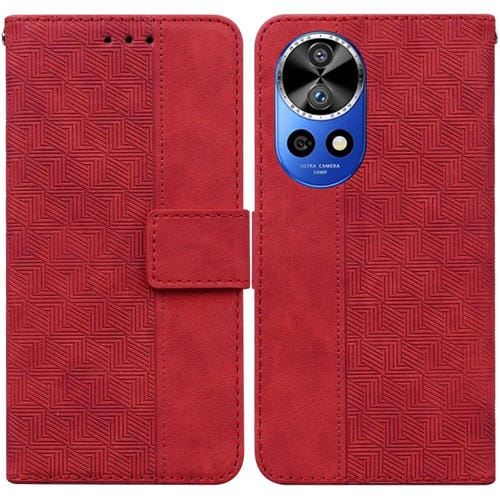 - 1x Funda de Cuero para Huawei Nova 12 Pro con Relieve Geométrico (Rojo)