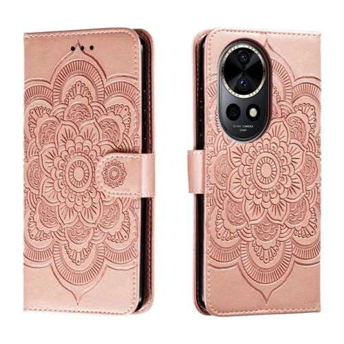 Funda de Cuero para Huawei Nova 12 Pro con Patrón En Relieve Sun Mandala (Oro Rosa)