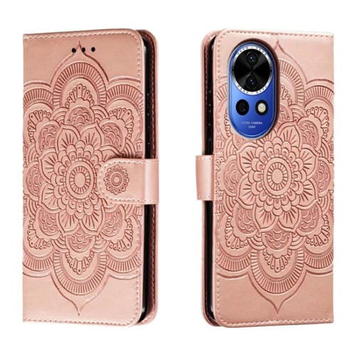 - 1x Funda de Cuero para Huawei Nova 12 con Patrón en Relieve Sun Mandala (Oro Rosa)