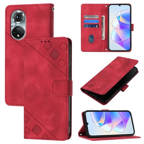 - 1x Funda de Cuero Skin Feel para Huawei Nova 9 Pro en Relieve (Rojo)