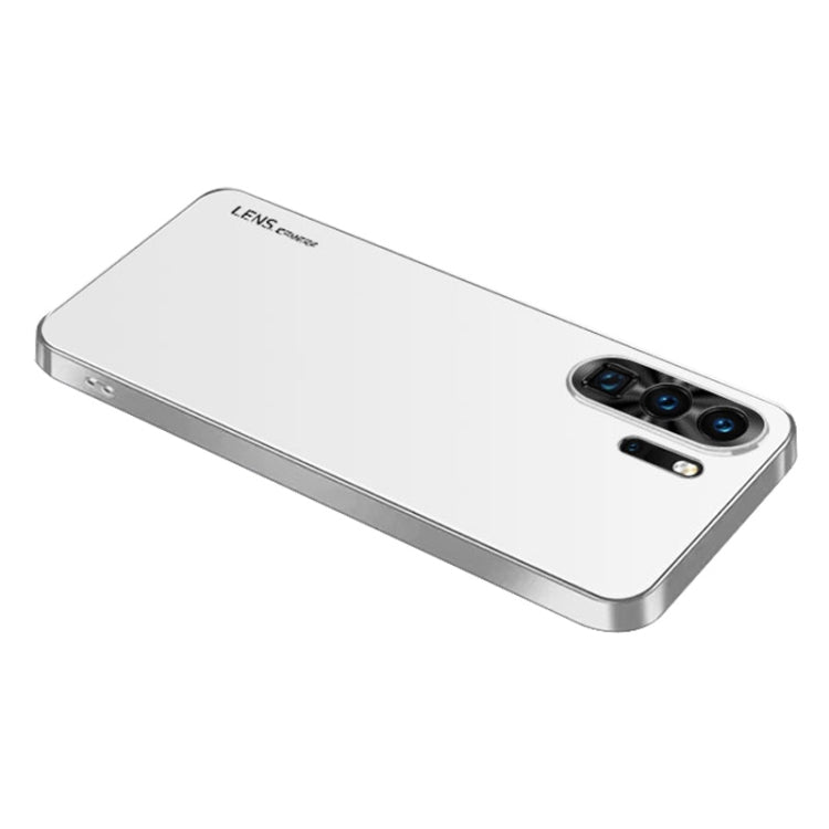 Caja de Teléfono Acrílico Galvanizado Esmerilado para Huawei P30 Pro (Blanco Plateado)