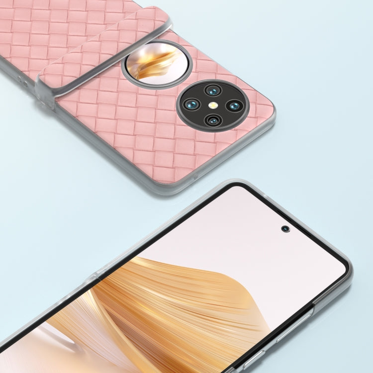 Funda 3 en 1 para Huawei Pocket 2 con Marco Translúcido Esmerilado y Textura Tejida (Rosa)