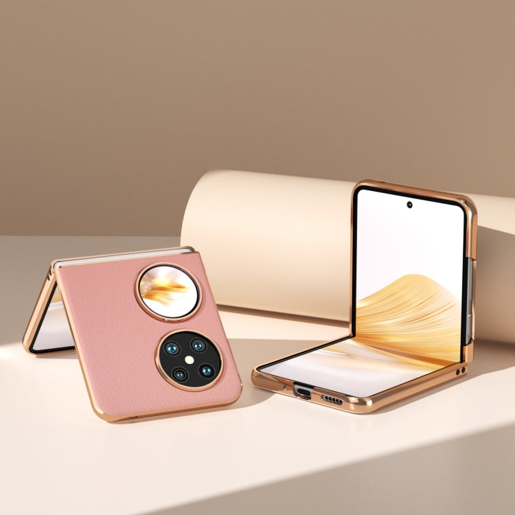 Funda para Huawei Pocket 2 Serie Wave de Cuero Genuino con Nanochapado (Rosa)