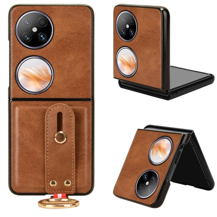 Funda Trasera de Cuero para Huawei Pocket 2 con Pulsera (Marrón)