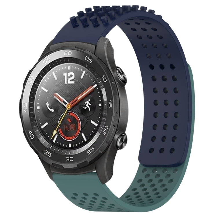 Correa de Silicona para Huawei Watch 2 con Puntos 3D Transpirables y Orificios 20mm (Azul Medianoche + Verde Oliva)