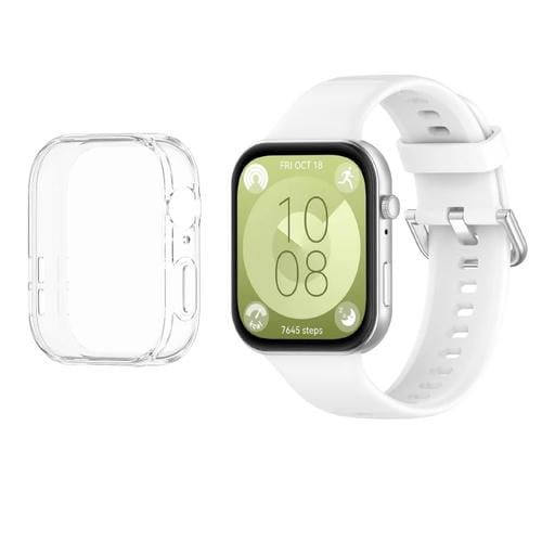 Correa de Silicona para Huawei Watch Fit3 + Funda Transparente (Blanco)