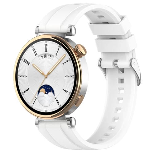 Correa de Silicona para Huawei Watch GT4 41mm con Hebilla Plateada (Blanco)