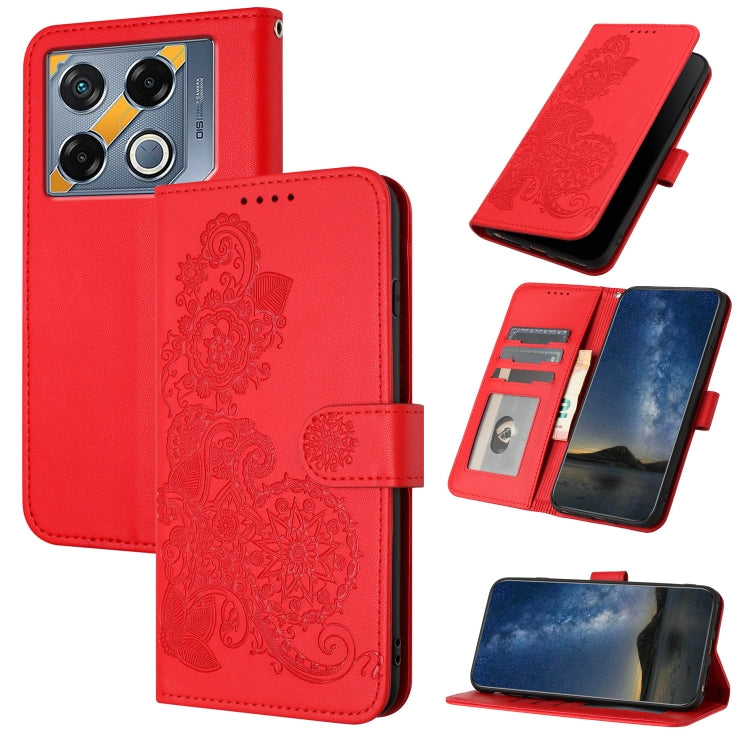 Funda de Cuero para Infinix GT 20 Pro con Tapa en Relieve Datura Flower (Rojo)