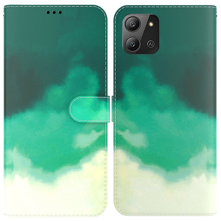 Funda de Cuero para Infinix Hot 11 2022 con Tapa Horizontal y Patrón de Acuarela (Verde Cian)