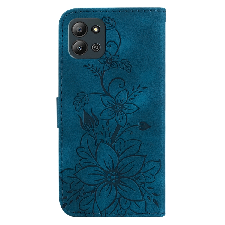 Funda para Teléfono Infinix Hot 11 2022 Cuero con Relieve Lily (Azul Oscuro)