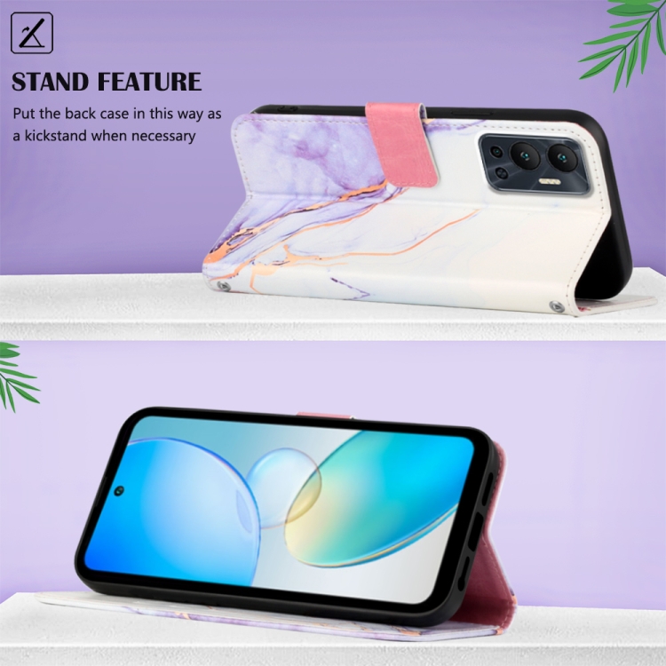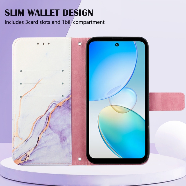 Funda de Cuero con Tapa para Infinix Hot 12 X6817 Pt003 Patrón Mármol (Blanco Púrpura)