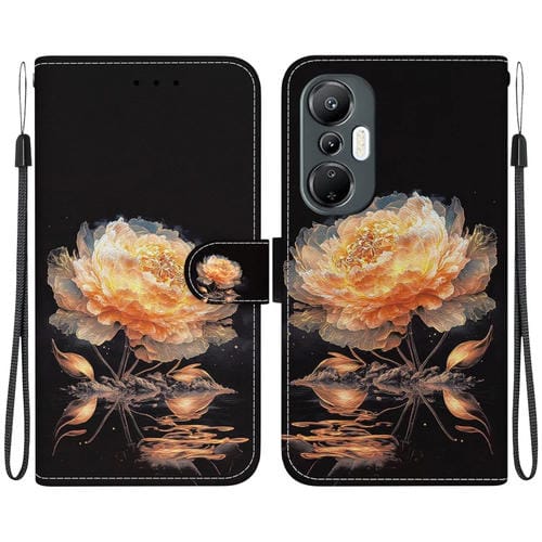 Funda de Cuero para Infinix Hot 20S con Dibujo Coloreado y Textura de Cristal (Peonía Dorada)
