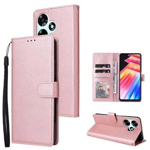 Funda para Infinix Hot 30 de Cuero Multifuncional con 3 Ranuras para Tarjetas (Oro Rosa)