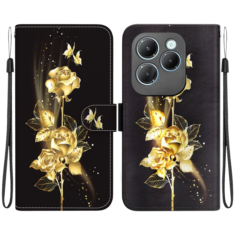 Funda de Cuero para Infinix Hot 40/40 Pro con Dibujo Coloreado y Textura de Cristal (Mariposa Dorada Rosa)