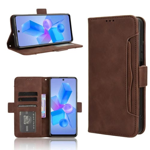 Funda de Cuero para Infinix Hot 40 4G con Textura Becerro y Ranuras para Tarjetas (Marrón)