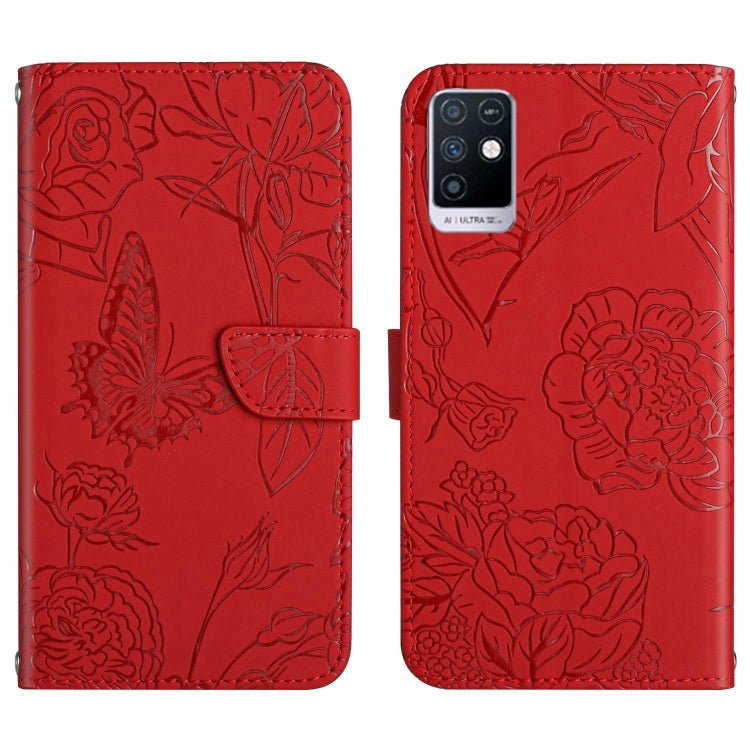 Funda de Cuero para Infinix Note 10 HT03 Skin Feel Butterfly con Tapa en Relieve (Rojo)