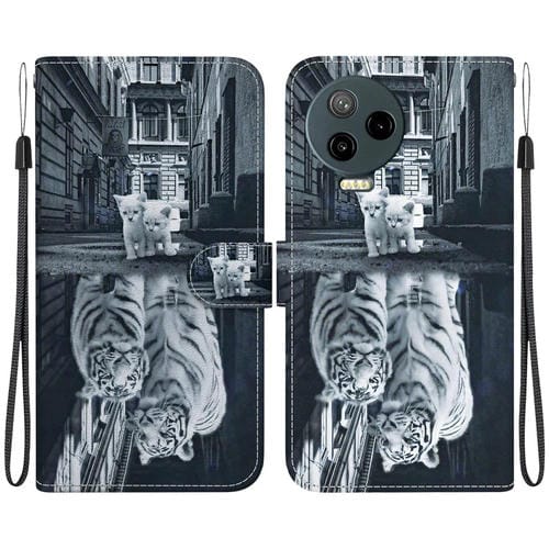 Funda de Cuero para Infinix Note 12 Pro 4G con Dibujo Coloreado y Textura de Cristal (Reflejo de Tigre Gato)