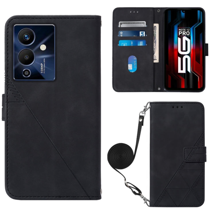 Funda de Cuero Crossbody 3D para Infinix Note 12 Pro 5G con Tapa En Relieve (Negro)