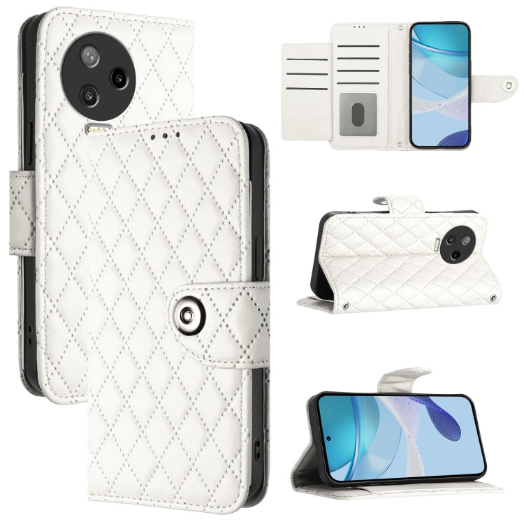 Funda para Infinix Note 12 Pro y Note 12 (2023) de Cuero con Tapa Textura Rómbica y Cordón (Blanco)