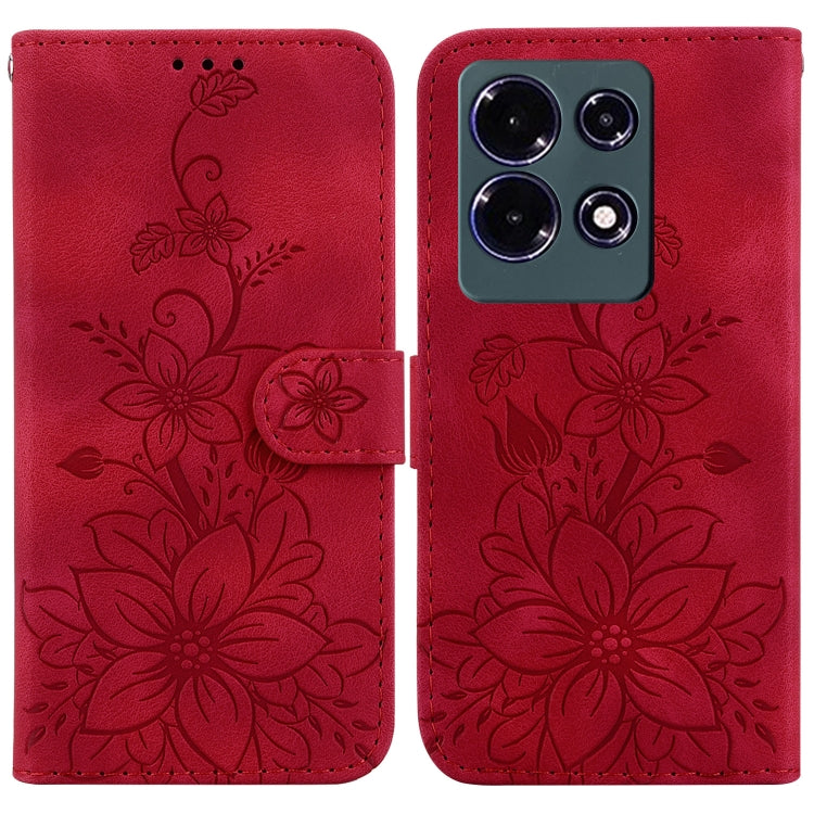 Funda de Cuero para Infinix Note 30 con Relieve Lily (Rojo)