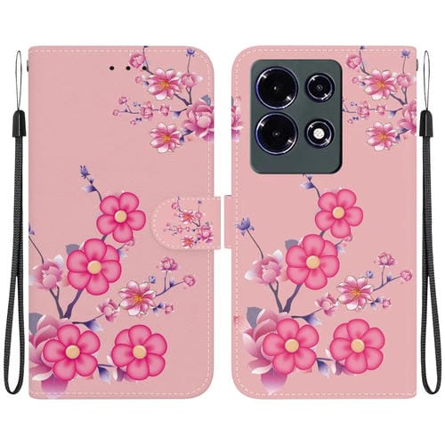 Funda de Cuero para Infinix Note 30 con Dibujo Coloreado y Textura de Cristal (Flores de Cerezo)