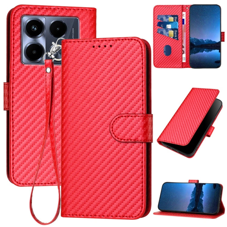 Funda de Cuero para Infinix Note 40 4G Yx0070 con Hebilla de Fibra de Carbono y Cordón (Rojo)