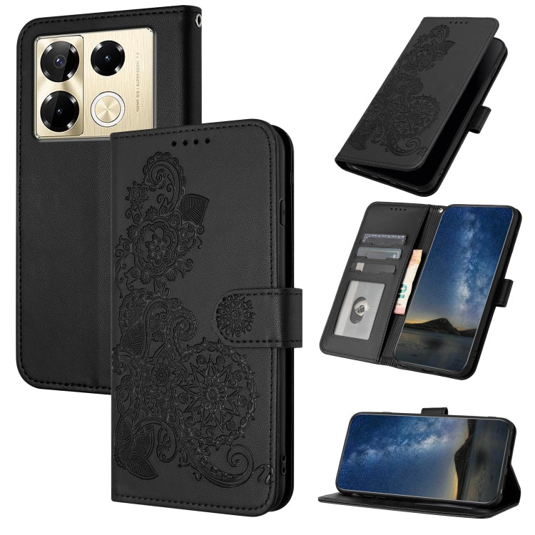 Funda de Cuero para Infinix Note 40 Pro 4G y 5G con Tapa en Relieve Datura Flower (Negro)