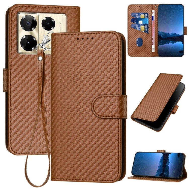 Funda de Cuero para Infinix Note 40 Pro 4G/5G Yx0070 con Hebilla de Fibra de Carbono y Cordón (Café)