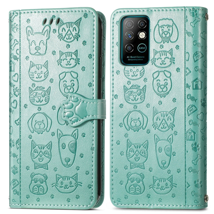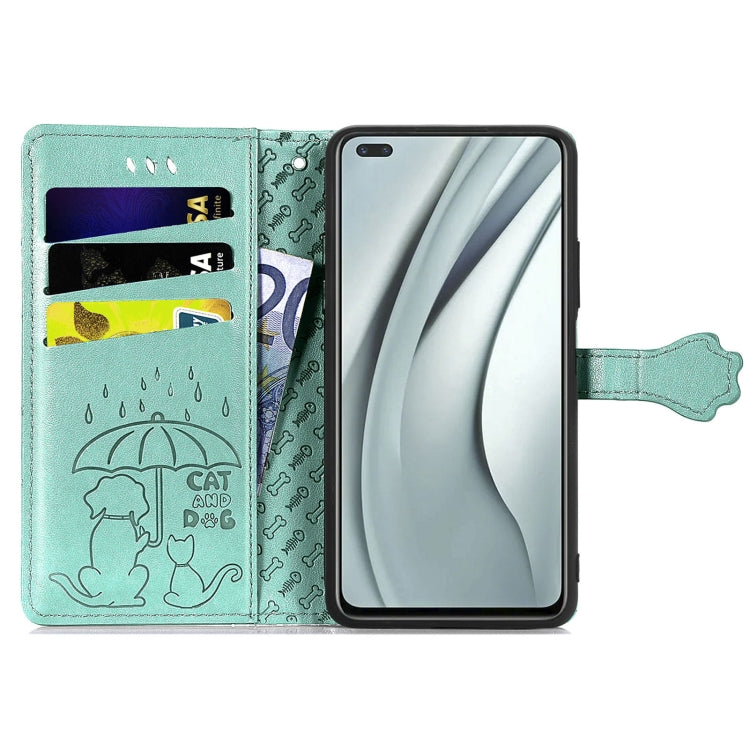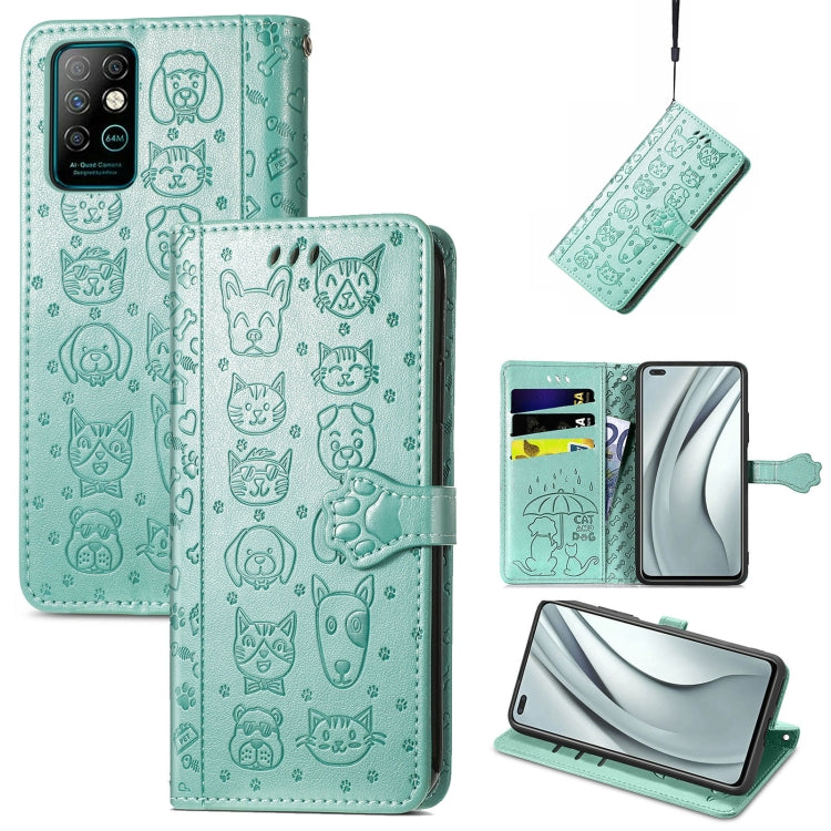 Funda Cuero Horizontal para Infinix Note 8 con Estampado Gato y Perro, Soporte, Ranuras y Cordón (Verde)