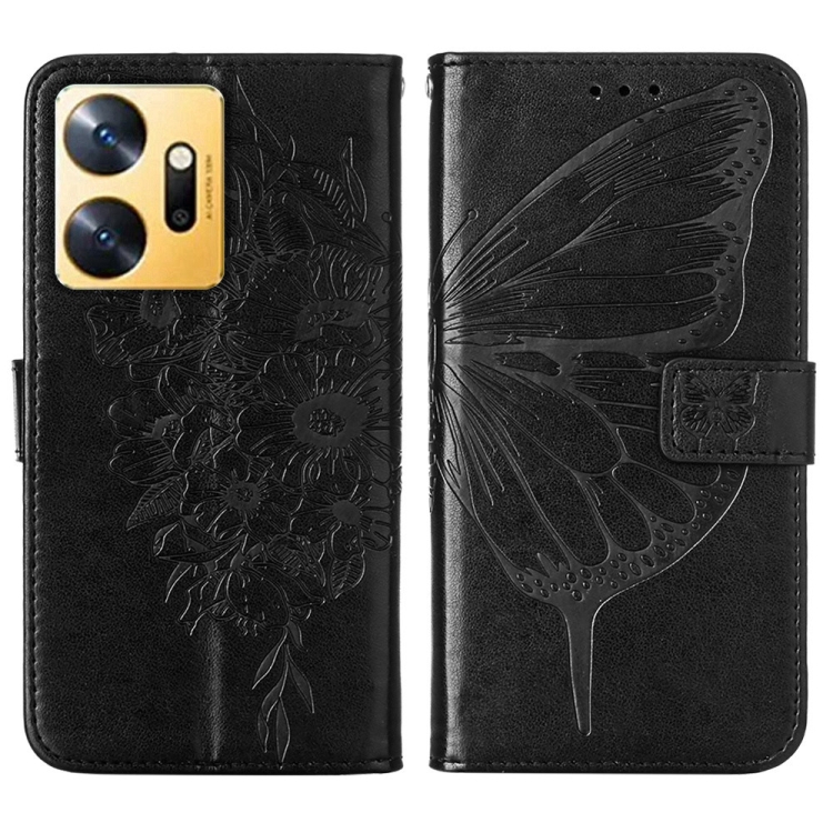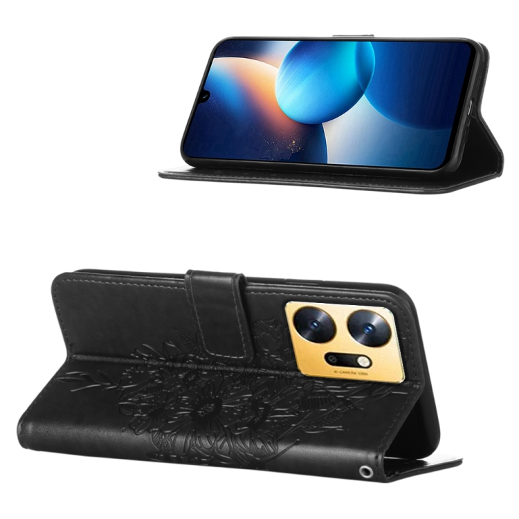 Estuche para Teléfono Infinix Zero 20 X6821 Cuero con Mariposa en Relieve (Negro)