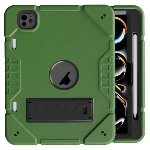 Funda híbrida de silicona para iPad Pro 11 (2024) con soporte de armadura (Verde Militar y Negro)