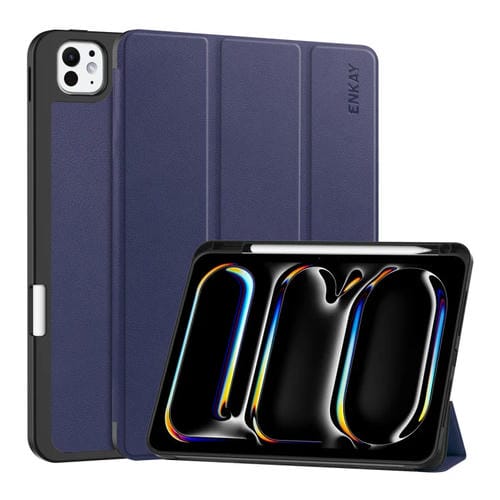 Funda Inteligente de Cuero TPU Enkay para iPad Pro 11 (2024) con Textura y Ranura para Bolígrafo (Azul Oscuro)