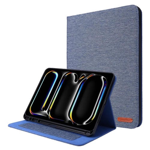 Funda para iPad Pro 11 2024 de Tela y Cuero (Azul)