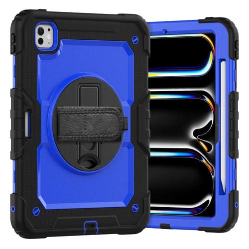 Funda híbrida de silicona para iPad Pro 11 (2024) con correa para el hombro (Azul Oscuro y Negro)