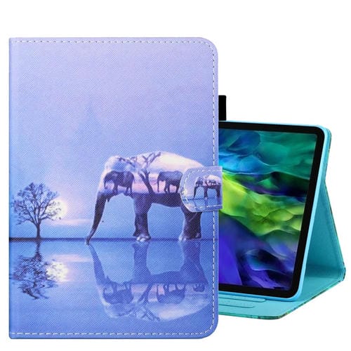 Funda de Cuero Inteligente para iPad Pro 11 (2024) Dibujo a Color Costuras (Elefante)