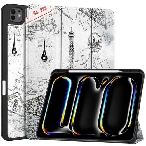 Funda para Tableta Custer Painted iPad Pro 13 (2024) Cuero Inteligente Soporte 3 Pliegues Bandeja Bolígrafos (Torre Eiffel)