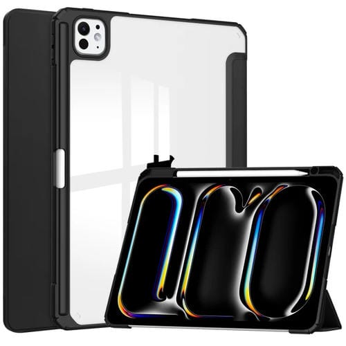 Funda para Tableta iPad Pro 13 2024 Cuero Inteligente TPU Transparente 3 Pliegues (Negro)