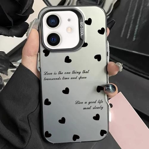 Caja híbrida para iPhone 11 TPU para PC con Pintura Plateada (Love Hearts Black)