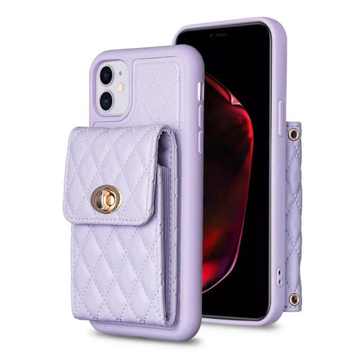Funda Cartera para iPhone 11 con Hebilla de Metal Vertical Estuche de Cuero Rómbico (Púrpura)