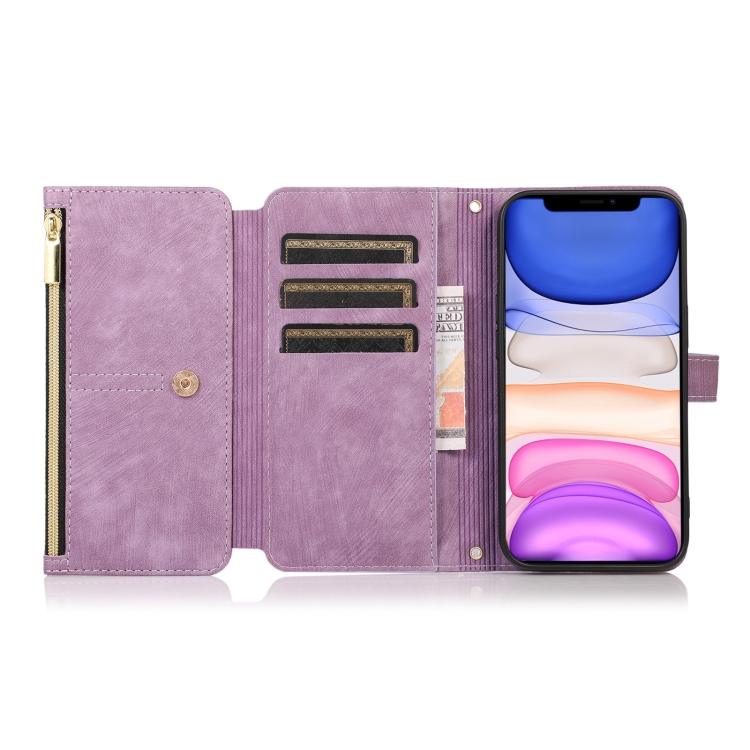 Funda para iPhone 11 Dream 9-Card Wallet Zipper Bag de Cuero para Teléfono (Púrpura)