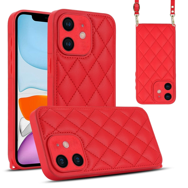 Estuche para Teléfono iPhone 11 Textura Rómbica Cordón Doble (Rojo)