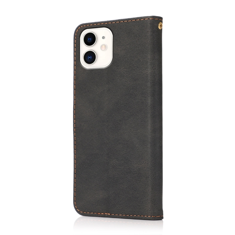 Funda de Teléfono iPhone 11 Cuero Costuras Dos Colores (Marrón Negro)