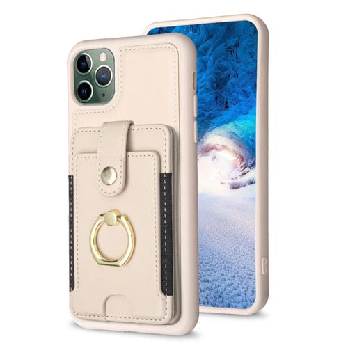 Anillo de Metal Tarjeta Bolsa Titular Caja para iPhone 11 Pro Bf27 (Beige)