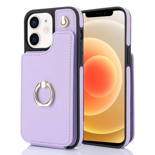 Funda para Teléfono Ym005 Skin Feel Card Bag para iPhone 12/12 Pro con Cordón Largo (Púrpura Claro)