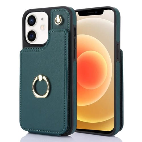 Funda para Teléfono Ym005 Skin Feel Card Bag para iPhone 12/12 Pro con Cordón Largo (Verde)